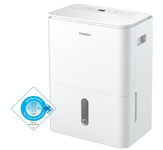 Ce déshumidificateur connecté COMFEE propose une utilisation confortable avec réservoir amovible, drainage continu et réglage automatique de l’humidité entre 45 % et 55 %. Sa puissance d’environ 440 W, son débit d’air de 160 m³/h et ses roulettes intégrées le rendent adapté à une utilisation domestique régulière avec déplacement facile entre les pièces.