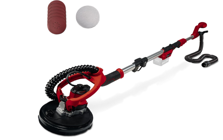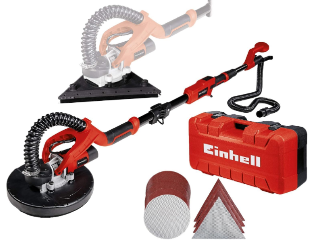 Einhell se montre des plus généreux lorsqu’il s’agit de ses ponceuses girafes. La marque les accompagne souvent de 6 disques de papier verre afin que vous puissiez réaliser différentes tâches et que vous en ayez pour un bon bout de temps. Ces machines, toutes hygiéniques, embarquent des raccords d’aspirateur, et sont vendues avec des coffrets de rangement pratiques. La puissance minimale est de 600 W et le prix correspondant s’élève à 128 euros.
